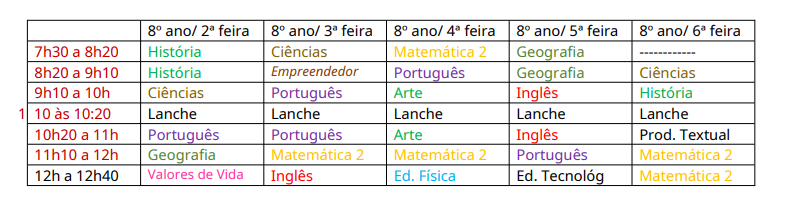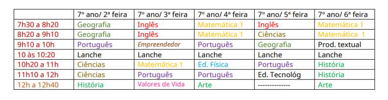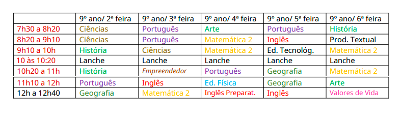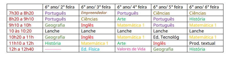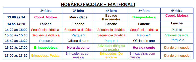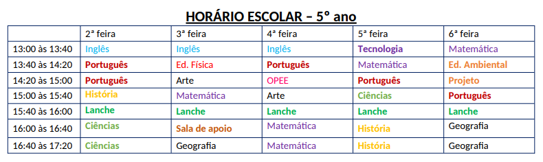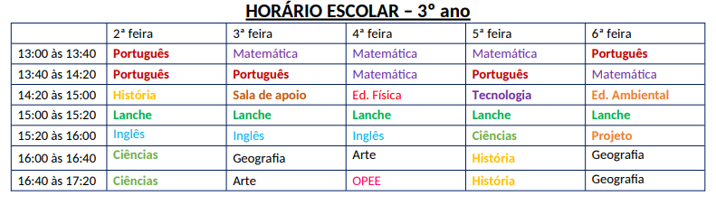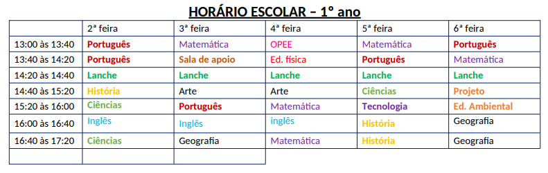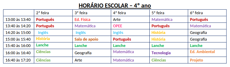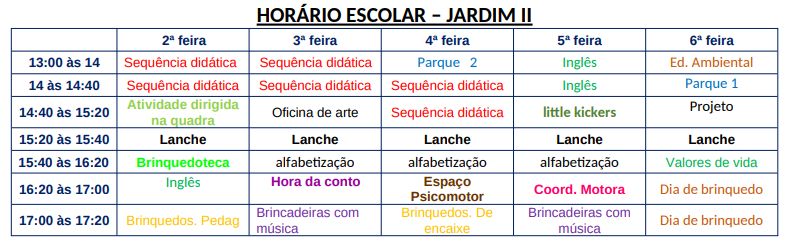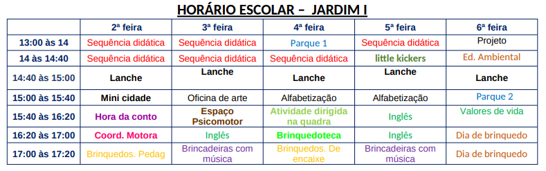 Confira abaixo os horários das turmas do Colégio Portal Brasil. Nossa grade foi cuidadosamente planejada para equilibrar momentos de aprendizado, recreação e descanso, garantindo o desenvolvimento integral dos estudantes em cada etapa escolar.